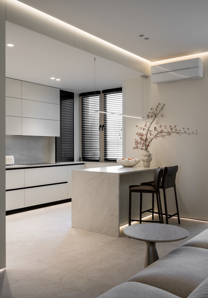Design: Elizaveta Vornikoglo, D3 Buro Mobilier: MDF vopsit / Furnital Italia Panouri de perete: MDF vopsit Foto: Oleg Bajura